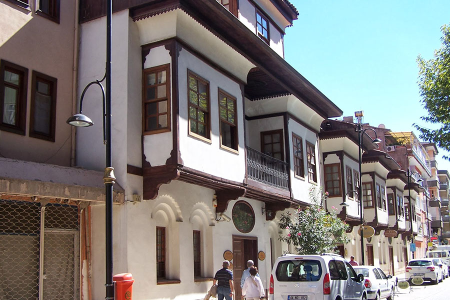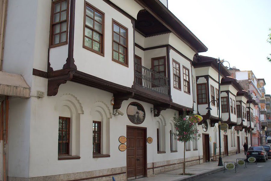 Konakların ana girişlerinde bulunan kapıları çift kanatlı yapılmış olup, üstlerinde, çoğunlukla oval bir yapıda olan ve rüzgârlık, aydınlık gibi isimlerle adlandırılan pencereler bulunur. Her konakta bulunan ve pencere hizasından sokağa doğru uzatılan, çıkıntı şeklindeki cumbaları, kafesli bir yapıya sahiptir. Konaklar haremlik ve selâmlık bölümlerine ayrılırlar. Sokak kapısından girildiğinde, ilk olarak, selâmlık adı verilen bölüme girilir. Evin misafir odası olarak kullanılan selâmlık bölümü, evin diğer odalarına göre daha büyüktür. Konakların avlularında bulunan zemin kat, genellikle yassı taşların yan yana koyularak oluşturulduğu taşlıktır. Bu katta bulunan odaların, genellikle, ambar, tandır ve kiler olarak kullanıldıkları için, hava giriş çıkışını kontrol amaçlı olarak, pencereleri küçük yapılmıştır.